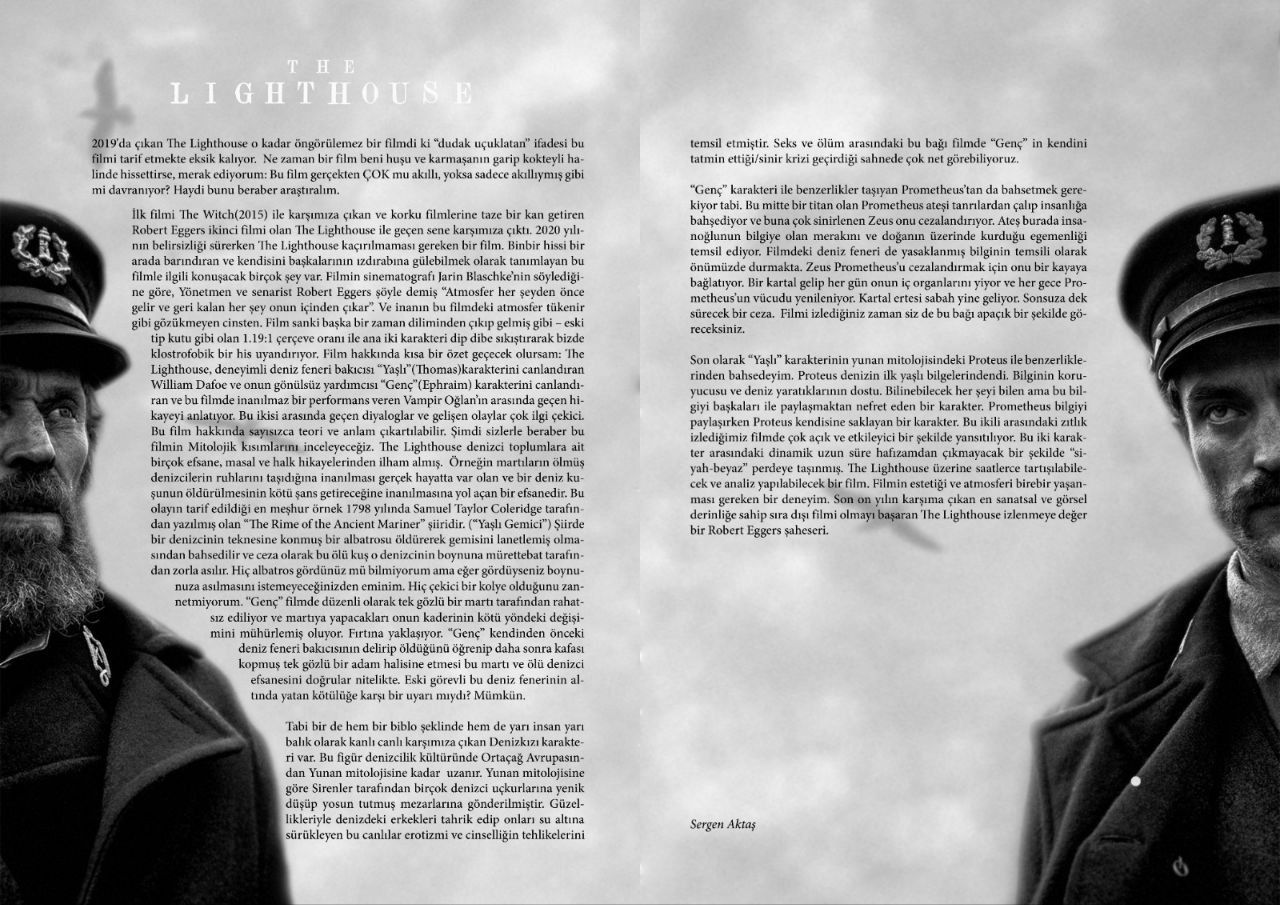 Finally, let me talk about the similarities of the “Old Man” character to Proteus in Greek mythology. Proteus was one of the first wise men of the sea. The guardian of knowledge and the friend of sea creatures. He is a character who knows everything there is to know but hates sharing this knowledge with others. While Prometheus shares knowledge, Proteus keeps it to himself. The contrast between these two is reflected very clearly and impressively in the film we watched. The dynamic between these two characters has been transferred to the “black and white” screen in a way that will stay in my memory for a long time. The Lighthouse is a film that can be discussed and analyzed for hours. The aesthetics and atmosphere of the film are an experience that must be experienced firsthand. The Lighthouse, which has managed to be the most artistic and visually profound extraordinary film I have come across in the last decade, is a Robert Eggers masterpiece worth watching.