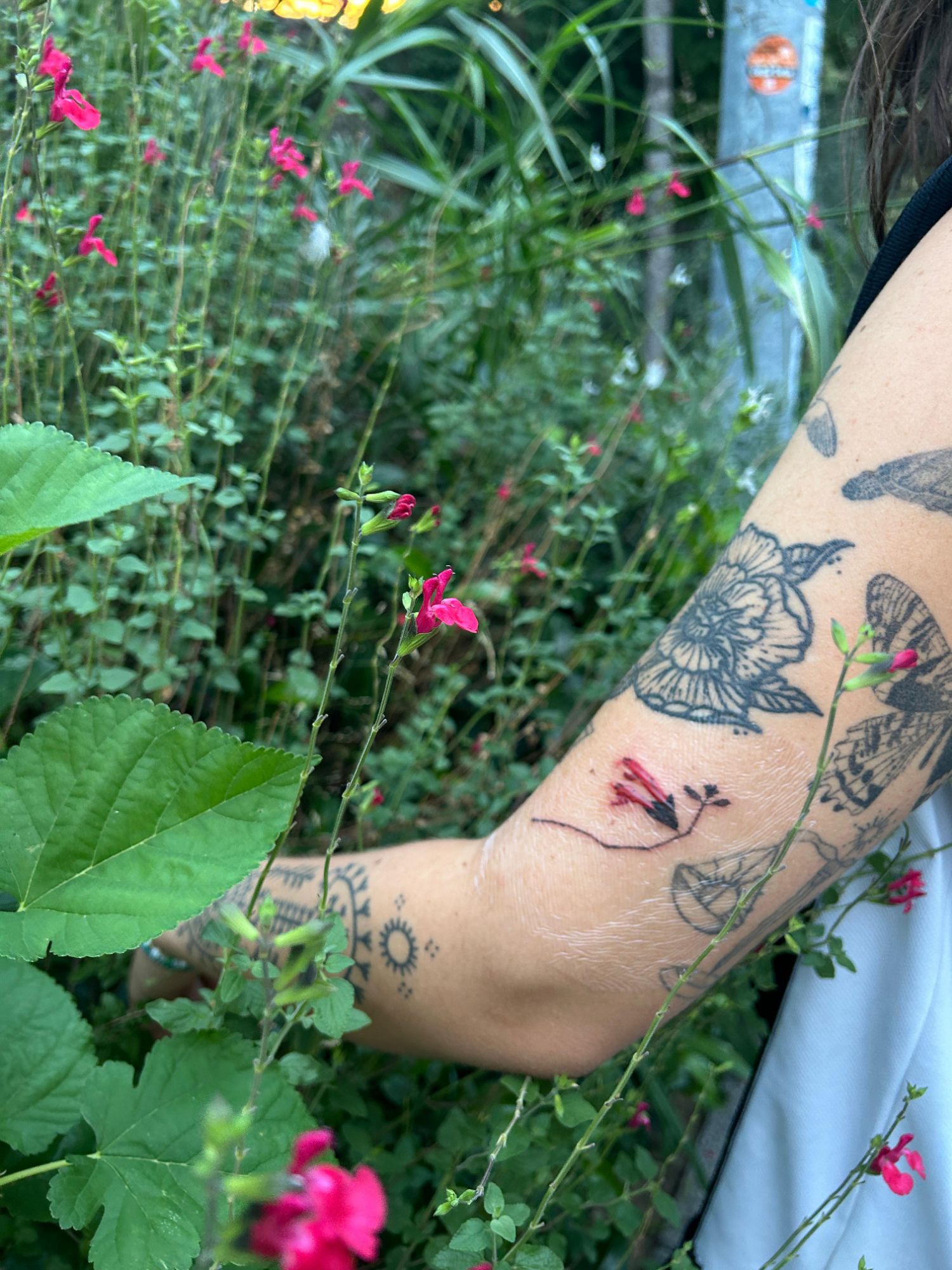 Alexandra and I clicked immediately as she was traveling through Istanbul, captivated by the vibrant culture and stunning summer vibes that surrounded us. There were two flowers I picked from my favorite road in my pocket. So I decided to give one to her. I saw her eyes widen in surprise and delight. She looked at me with eagerness and asked if we could make a tattoo of this fleeting experience, wanting to capture the essence of our newfound friendship. We ran to the studio, and immediately made a tattoo of it, both of us feeling that this mark would forever remind us of that special days in the heart of Istanbul!